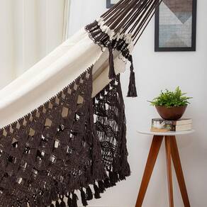 Rede de Dormir Clone Especial Bege com Marrom, Beleza e Requinte numa Rede de Descanso, acabamentos exclusivos em Macramê com detalhes feito à mão.