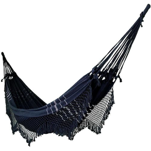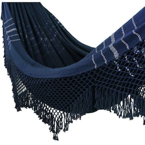 Rede de Dormir Descanso Casal Super King Azul Gigante A rede super king toda feita em algodão, possui grandes dimensões para acomodar com conforto duas pessoas de grande estatura Confeccionada com algodão de alta qualidade que garante sua resistência e durabilidade.Especificações-comprimento total da rede 470 cm-comprimento total do tecido 300 cm-largura  total do tecido 180 cm-capacidade máxima de peso 250 kg-peso total da rede 3,000 kg-composição 100% algodão Instalação recomendada-altura média do gancho em relação ao chão 160 cm-distância média entre os ganchos 330 cmAs informações acima podem variar de acordo com o ambiente que será feita a instalação da rede.
