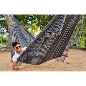 Rede de Dormir Descanso Casal Super King Cinza Gigante A rede super king toda feita em algodão, possui grandes dimensões para acomodar com conforto duas pessoas de grande estatura Confeccionada com algodão de alta qualidade que garante sua resistência e durabilidade.Especificações-comprimento total da rede 470 cm-comprimento total do tecido 300 cm-largura total do tecido 180 cm-capacidade máxima de peso 250 kg-peso total da rede 3,000 kg-composição 100% algodão Instalação recomendada-altura média do gancho em relação ao chão 160 cm-distância média entre os ganchos 330 cmAs informações acima podem variar de acordo com o ambiente que será feita a instalação da rede.