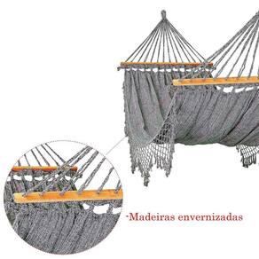 Ideal para aqueles que preferem a rede aberta, tornando o ambiente mais bonito e aconchegante, pode ser utilizada na varanda, áreas verdes da casa, ou dormir um sono após o almoço. Produzida com fios de algodão de forma artesanal, tecido macio e confortável tornando o seu descanso mais relaxante, possui capacidade de peso de até 170 kg.Esse modelo especial de rede de dormir possui madeiras nos dois lados da rede que permite deixá-la sempre aberta.Comprimento total: 390 cmDimensões tecido: 240x150 cmPeso: +/- 2,800 kgTecido: algodãoCapacidade máxima de peso: 170 kgMadeira: 94 cm cada madeiraO prazo de validade é de tempo indeterminado. Não mancham e nem soltam tinta, desde que sejam lavadas corretamente. Pode haver uma diminuição ou esticamento de cerca de 5% do tamanho total devido à lavagem. Redes pré-selecionados que atesta a segurança e a qualidade contra os defeitos de fabricação.