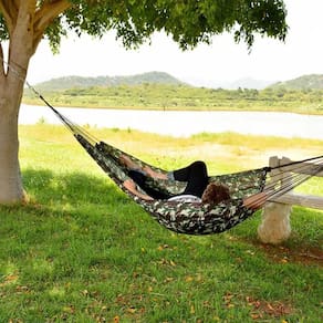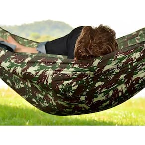Essa Rede de Dormir e descanso é fabricada com tecido 100% Nylon, altamente resistente e utilizado em paraquedas, esse modelo suporta até 200 quilos. Essa rede de dormir pode ser utilizada em diversos ambientes, sejam eles abertos como chácaras, alpendres ou varandas, é possível inclusive usar dentro d´água, é uma ótima alternativa para quem deseja acampar. Fácil transporte, cabe numa mochila, acompanha uma pequena bolsa Cor : Estampa Exercito Dimensões: 2,10 m x 1,60 m,. Comprimento Total: 3,26 m Peso: +/- -.600 kg Capacidade Máxima de Carga: 120 kg Composição: 100% Nylon Poliéster Distância Ideal dos Ganchos: Aprox.. 1,90 a 2,50 m Altura Ideal dos Ganchos: Aprox.. 1,90 m Ean: 7898625660470