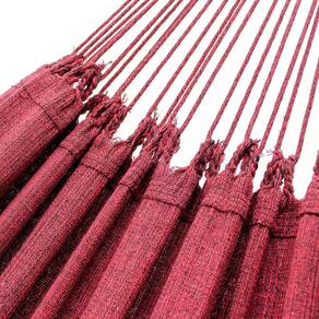 Rede De Dormir Jeans Life Vinho Com Preto Com Franjas Rede de Dormir Jeans Life Mesclado Vinho com Preto. Uma rede de descanso básica com uma barra de franja nas laterais. Uma ótima opção de decoração com preço acessível sem perder o charme e o conforto de uma rede de dormir. Nossas redes de descanso são feitas em fios 100% algodão, não soltam tintas na lavagem desde que sejam obedecidas as instruções que contém no manual. Esse modelo de rede para dormir, cabe numa mochila, pode ser levado para qualquer lugar. É uma ótima opção para pequenos ambientes, varandas, sítios e acampamentos. Dimensões: 2,60 m x 1,50 m só tecido Comprimento Total: 3,90 m punho a punho Peso: +/- 1.600 kg Capacidade Máxima de Carga: 140 kg Composição: 100% Algodão Distância Ideal dos Ganchos: Aprox. 2,,90 a 3,30 m Altura Ideal dos Ganchos: Aprox. 1,90 m