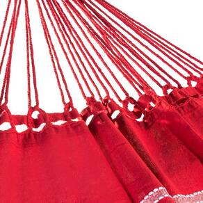A Rede de dormir da linha pernambucana é composta de uma varanda feita à mão, com traços em forma de losangos, tranças e mamucaba reforçando e dando um toque de beleza nas bordas antes dos punhos e detalhes em alto relevo.Nossa rede de descanso tem cordão trançado duplo, reforçando os punhos que são compostos de 13 pares de cordas, sendo ligados a 26 cabeças feitas manualmente em cada lado da rede, harmonizando conforto e simplicidade. Seu babado varanda é confeccionado com apenas uma cabeça de nó feita manualmente.O seu tecido é batido num tear elétrico, com fios 8/1 com desenhos interlaçados de duas cores entre branco e azul, com uma trama diferente antes de cada punho. A rede de dormir da linha pernambucana pode ser armada em varandas, quartos, salas, além de servir de uma ótima decoração para o seu ambiente. Descanse e relaxe em nossas redes de dormir. Dimensões: 2,55 m x 1,55 m só tecido Comprimento Total: 3,90 m punho a punho Peso: +/- 1,950 kgCapacidade Máxima de Carga: 180 kgComposição: 100% AlgodãoDistância Ideal dos Ganchos: Aprox. 2,90 a 3,60 m Altura Ideal dos Ganchos: Aprox. 1,90 m Garantias: O prazo de validade é de tempo indeterminado. Nossas redes de balanço não mancham e nem soltam tinta desde que sejam lavadas de acordo com o manual que as acompanham.Pode haver uma diminuição ou esticamento de cerca de 5% do tamanho total devido à lavagem. Nossos produtos são pré-selecionados por uma equipe que atesta a sua segurança e a qualidade contra os defeitos de fabricação. Marca: Redes E Decoracao