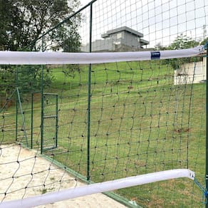 Rede de Futevôlei ProfissionalTamanho Oficial com Duas Faixas SintéticasMaterial: polipropileno, 100% virgem com Tratamento U.V,contra as ações do Tempo;Espessura do Fio: 2mm;Tamanho da Malha: 10x10cm;Dimensões: 1,00m de Largura por 9,50m de Comprimento;Cor: Preta;Faixas: Lona Superior e Inferior com 6cm de Largura;Garantia: contra Defeitos de Fabricação, não cobrindo danos causados na/após sua instalação, como cortes, queimaduras, produtos químicos ou qualquer outro produto que altere a resistência molecular do produto.