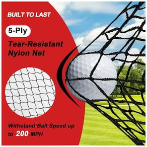 Componentes Inclusos: Rede de Golfe 10x7ft, 1 rede de chipagem com 3 zonas-alvo, Tapete de Golfe 2 em 1, 6 bolas de golfe PU, 7 tees de golfe, 1 tee de borracha, 4 estacas, 1 bolsa de transporte