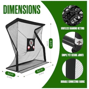 Com uma altura de 2,49 metros, esta rede é versátil e pode ser facilmente colocada em espaços internos, como sua sala de estar ou garagem. Feita com rede ultra durável, ela suporta o impacto de golpes rápidos de bola em balanços poderosos, permitindo o uso de equipamentos de golfe reais.