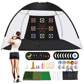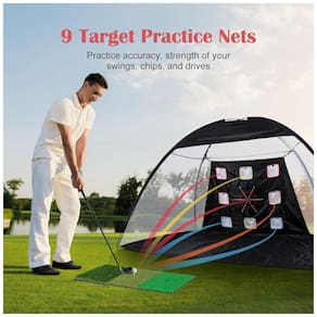 O conjunto de rede de rebatidas de golfe inclui um tapete de rebatidas de 2 x 0,3 metros, 10 bolas de golfe PU, 11 camisetas de golfe (sendo 2 de borracha) e uma bolsa de transporte. Com esses acessórios completos, você tem tudo o que precisa para praticar golfe em qualquer lugar e a qualquer hora, com custo reduzido.