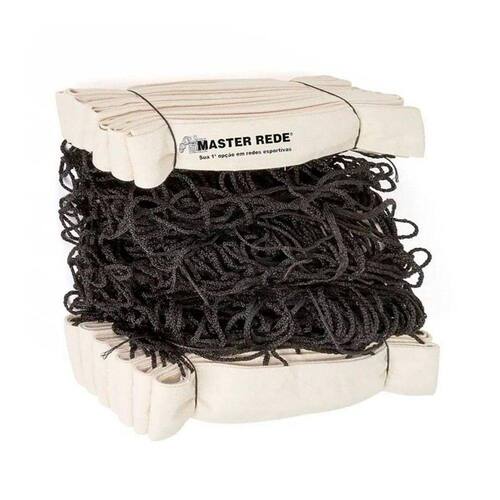 - Faixa inferior com 5 cm de largura fabricada em matéria prima de PVC Emborrachada cor Branca, com fio guia grosso por dentro que serve para amarrar junto aos postes de forma a esticar e tensionar a rede.
