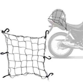 Rede elástica para prender capacetes e outras cargas no bagageiro.