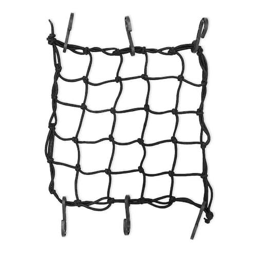 Rede elástica para prender capacete e outras cargas no bagageiro.