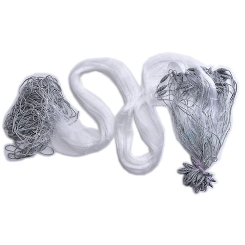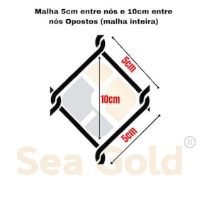 Rede para pesca malha: 5. 0 5. 0cm entre nós, 10 cm malha inteira entre nós opostos . Obs: observe na segunda imagem como é a medida da malha especificada comprimento: 40 metros altura: 2,40. Fio: 0. 30 mm monofilamento nylon. Bóia embutida na parte superior. Cinza embutido na parte inferior