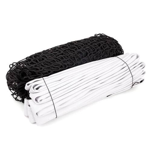 Este modelo possui:- 1 Faixa superior fabricada com 6 cm de largura, em PVC emborrachado branco, anexado a rede através de 3 costuras paralelas, com fio fino por dentro, que serve para ser utilizado para passagem do cabo de aço dentro da faixa, de modo a fornecer a sustentação da rede.- Reforço com rebite de latão, com acabamento niquelado (antiferrugem), reforçando a costura das faixas. - 2 faixas laterais fabricadas com 6 cm de largura, fabricada em Nylon Poliéster, cor preta, anexada a rede por 2 costuras paralelas. - 1 faixa inferior fabricada com 4 cm de largura, fabricada em Nylon Poliéster, cor preta, anexada a rede por 2 costuras paralelas. - 5 ilhoses de latão com acabamento niquelado (antiferrugem) em cada lateral da rede.