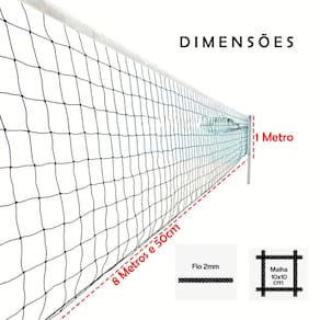 Com um comprimento de 8 metros e 50cm e altura de 1 Metro, essa rede profissional proporciona uma experiência de jogo incrível. Feita de polietileno resistente, com faixa branca resistente, você poderá desfrutar dessa rede por muito tempo. Seja para jogar em casa, na praia, clube, escolas, em quadras, esta rede é a escolha ideal para quem busca qualidade e diversão.