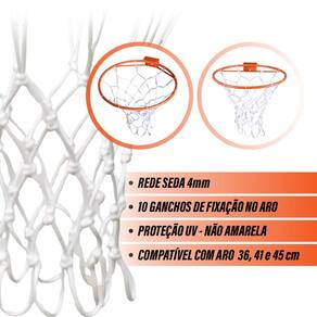 Durabilidade: fabricada em polietileno, material resistente ao uso frequente. Fácil instalação: conta com 10 alças que facilitam a fixação no aro. Versátil: pode ser utilizada em tabelas de basquete residenciais, escolares ou em áreas de lazer. Custo-benefício: ideal para quem deseja qualidade com preço acessível. Design clássico: cor branca que combina com qualquer tipo de tabela ou estrutura.