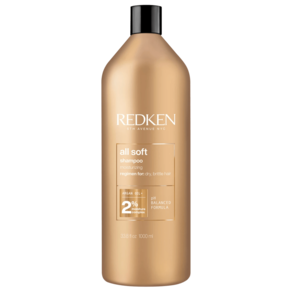 Shampoo para cabelos secos e opacos. Redken All Soft limpa delicadamente e promove hidratação profunda.