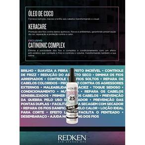 Redken One United 25 Benefits Tratamento Multibenefícios para todos os tipos de cabelo. Redken One United 25 Benefits oferece, como o nome mesmo diz, 25 benefícios instantâneos para fios macios, com brilho, protegidos do calor térmico, sem frizz e com efeito duradouro.