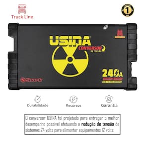 O Conversor USINA foi projetado para entregar o melhor desempenho possível efetuando a redução de tensão de sistemas 24 Volts para alimentar equipamentos 12 volt. Ele possui em seu circuito a topologia HALF-BRIDGE BUCK converter Síncrono em que se utiliza transístores MOSFETS de baixa perda com resistência interna de 2miliohms, isso garante baixa queda de tensão nos transístores traduzido em um alto rendimento acima de 92%, o que traduz em um produto leve e pequeno, porém, potente e robusto.