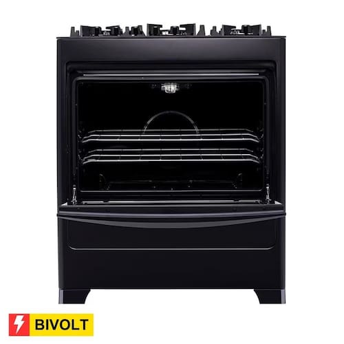 Tudo isso, em um fogão com design moderno e mesa de vidro temperado inspirado no acabamento de cooktops, a cor preta deixa sua cozinha inovadora!