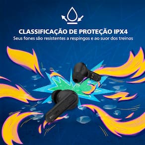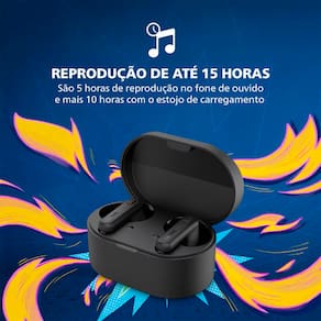 Músicas por mais tempo Com o Fone de Ouvido Philips é possível ter uma reprodução contínua de 5 horas mais 10 horas adicionais graças ao prático estojo com carregamento portátil. Além disso, possui a classificação IPX4 que garantem que seus fones de ouvido resistam à respingos, chuva leve e suor, oferecendo durabilidade e tranquilidade em qualquer situação.