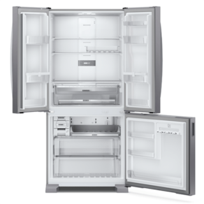 Se você está procurando uma geladeira que contemple economia de energia, grande capacidade e beleza na sua cozinha, acaba de encontrar: Geladeira Brastemp French Door BRO85AK com 554 litros de capacidade, distribuídos entre 377 L no refrigerador e 177 litros no freezer.