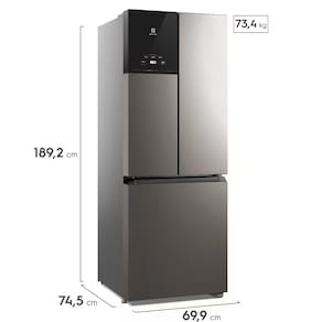 A Geladeira Electrolux Frost Free Inverter 480L Efficient AutoSense 3 Portas Inox Look IM7S é a escolha para quem busca estilo e praticidade. Com um design inovador e compacto, ela possui apenas 70 cm de largura, ideal para cozinhas com espaço limitado. Suas três portas proporcionam uma organização eficiente e moderna, transformando a aparência da sua cozinha.