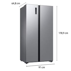 Modernidade na Sua Cozinha A Geladeira Samsung Frost Free Side By Side RS52 é uma opção espaçosa e moderna para o armazenamento de alimentos. Com 2 portas e uma capacidade generosa de 490 litros, ela oferece amplo espaço para organizar bebidas e alimentos diversos.