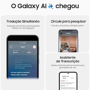 Nada melhor para falar sobre a tecnologia do Samsung Galaxy S23 FE 5G do que a inteligência artificial. Com a Galaxy AI, você pode acessar os recursos de foto inteligente. Com essas opções, ficou muito mais fácil ter o clique perfeito. Com poucos toques é possível fazer pesquisas a partir de círculos em uma imagem, além de edições e ajustes em fotos. Esta IA é capaz, também, de fazer tradução em tempo real durante uma ligação ou chat, transcrição de gravações de voz e ainda pode sugerir respostas e organizar anotações.