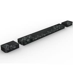 A JBL Bar 1300 com Dolby Atmos® possui quatro drivers com saída de som voltada para cima na barra principal e mais dois nos alto-falantes removíveis.
