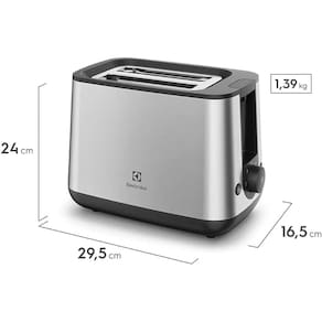 Faça torradas saborosas com a Torradeira Elétrica Electrolux Experience ETS25 e ainda deixe sua cozinha moderna. O acabamento em aço inoxidável escovado traz maior durabilidade e sofisticação ao aparelho. A torradeira Electrolux conta com 7 níveis de tostagem para o seu pão, você escolhe o ponto ideal para seu paladar, obtendo torradas deliciosas para o café da manhã ou da tarde. Caso você queira preparar waffles ou pães congelados, isso não será um problema, pois a torradeira conta com a Função Descongelar. Obtenha pães quentinhos e sem tostar facilmente com a Função Reaquecer e verifique o ponto da torrada mesmo durante seu preparo com a Função Cancelar; esta opção permite que você interrompa a tostagem do pão no momento que preferir! A bandeja coletora de migalhas é removível, compacta e fácil de limpar. As aberturas extra largas permitem que você prepare pães de diversas espessuras e as luzes em LED branco facilitam na hora de visualizar se o aparelho está ligado e qual a função que está selecionada. Tenha o melhor da Electrolux em sua cozinha. CARACTERÍSTICAS ACABAMENTO EM AÇO INOXIDÁVEL ESCOVADO: Mescla o toque moderno do acabamento em aço escovado com a maior durabilidade oferecida pelo aço inoxidável. 7 NÍVEIS DE TOSTAGEM: Escolha o nível de tostagem ideal para o seu pão. FUNÇÃO DESCONGELAR: Descongele e toste pães, waffles e muito mais com facilidade. FUNÇÃO REAQUECER: Basta apertar o botão e tenha pães quentinhos, sem tostar, com maior praticidade. FUNÇÃO CANCELAR: Verifique o ponto da torrada. Acione esta função para que a tostagem seja interrompida. COLETOR DE MIGALHAS: Inclui bandeja compacta na base que coleta as migalhas e torna a limpeza mais fácil. ABERTURAS EXTRA LARGAS: Conta com aberturas maiores que podem ser usadas para tostar, esquentar e descongelar diversos tipos de pães. BOTÕES LUMINOSOS: Veja facilmente se o produto está em funcionamento com o indicador em LED Branco.