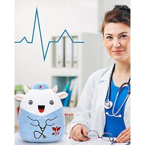 refavor Enfermeira Vaca Bicho de pelúcia - 8 polegadas Marinha Vaca Pelúcia Brinquedo Enfermeira Presentes para Mulheres RN Pelúcia Enfermeira Graduação Animais de Pelúcia Meninas Estudantes Semana de Enfermagem Enfermagem Soft Cow Plushies Presente (Bell)