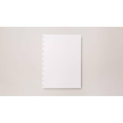 Refil de folhas lisas, sem pautas, para caderno inteligente tamanhho grande universitário com folhas de 11 furos e gramatura 90g e tamanho 20cm X 27,5cm.