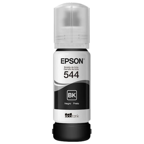 Tinta Epson T544 PretoGarrafa de tinta preta T544 (T544120), 100% genuino, para impressoras Epson EcoTank L1110, L1210, L3110, L3150, L3160, L3210, L3250, L3251, L3260, L5190 , L5290Como identificar se realmente os refis de tinta são genuinos?- Caixa lacrada com holograma- Garrafa embalada com plástico a vácuo- Logo Epson em relevo na tampa e no fundo da garrafaIdentifique e mova o holograma que está na caixinha para à direita aparecerá a palavra EPSONAo Mover o mesmo holograma para a esquerda aparecerá a palavra GENUINEEspecificações:- Volume: 65ml- Cor: Preta- Referência: T544120- Compatibilidades: L3150, L3110, L3210, L3250, L1110, L5190