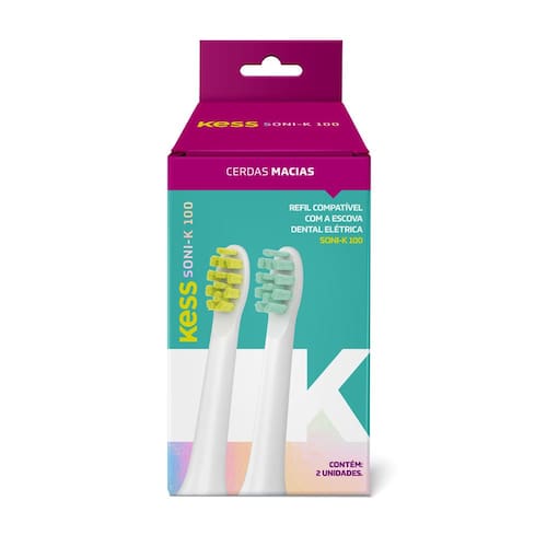 Mantenha a eficiência da sua Escova elétrica Kess Soni-k 100 com o refil autêntico, desenvolvido para garantir limpeza profunda e suave dia após dia. Com cerdas macias de alta qualidade, o refil remove mais placa bacteriana que escovas manuais comuns, ajudando a preservar a saúde bucal com conforto e segurança. O design anatômico e o corte em nível das cerdas proporcionam maior alcance nos espaços entre os dentes e ao longo da linha da gengiva, sem agredir o esmalte ou causar irritações. A troca regular do refil garante o desempenho ideal da escova e evita o acúmulo de resíduos, oferecendo uma escovação sempre eficiente. Benefícios:Compatível com a escova elétrica Kess Soni-k 100;Cerdas macias que limpam com eficácia e suavidade;Design anatômico para alcance preciso;Ajuda a manter a saúde das gengivas e prevenir o acúmulo de placa;Fácil de encaixar e remover;Recomendado por dentistas trocar a cada 3 meses.Características:Modelo: Refil Soni-k 100;Quantidade: 2 unidades;Tipo de cerdas: Macias;Indicação: Uso adulto;Fácil encaixe por pressão;Cor das cerdas pode variar;Compatibilidade: Exclusivo para escovas elétricas Kess Soni-k 100.Modo de usar: Siga as instruções da embalagem para garantir o melhor desempenho e maior durabilidade do produto. Sobre a marca: Kess é uma marca brasileira que une design funcional, praticidade e inovação em produtos de cuidado pessoal. Com foco em tecnologia e bem-estar, oferece soluções inteligentes que elevam a experiência do autocuidado no dia a dia
