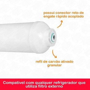 Este refil possui um conector engate rápido acoplado, facilitando a sua instalação e substituição. O declorador selado é compatível com qualquer refrigerador side by side que utiliza FILTRO EXTERNO.