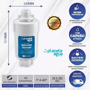 Redução de cloro, retenção de partículas, controle da proliferação de bactérias
