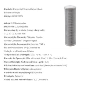 Ótima eficiência na remoção de cloro livre, Evita a proliferação de bactérias, Auxilia na retenção de sólidos e sedimentos suspensos na água, além de reduzir cor e turbidez, Preparação de alimentos e bebidas sem cloro, gostos e odores desagradáveisTipo