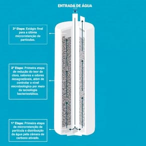 Remover cloro, eliminar sabores, reter partículas de sujeira, barro e ferrugem, elevar o pH e inibir a proliferação de bactérias.Vendido por 24 HORAS FILTROS e entregue por Extra