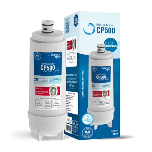 Refil para purificadores Masterfrio rótulo azul. Elimina odores, sabores, retém partículas e reduz o cloro. Possui 3 etapas de filtragem e ação bacteriostática.Tipo