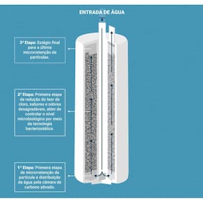Refil para purificadores Latina, elimina impurezas sólidas, odores e sabores indesejáveis da água. Vida útil de 12 meses ou 5000 litros.Tipo
