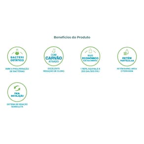 Compatível com os purificadores de água Soft Everest. Certificado voluntariamente, este refil teve sua qualidade testada e comprovada, garantindo uma excelente redução de cloro e retenção de partículas indesejáveis como areia, ferrugem e barro. Além disso, ele é eficaz na inibição da proliferação de bactérias.