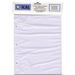 R6 - REFIL FOLHA BRANCA PARA ÁLBUM AUTOCOLANTE ICAL - kit 10 folhas = 20 páginas Folhas em plástico texturizado branco com memo central. KIT contém 10 folhas de papel branco adesivado dos dois lados e coberto por película de plástico transparente. Área útil das folhas: 17,6X21,5 Cm Compatível com o Álbum Autocolante ICAL Ean: 7896013705758
