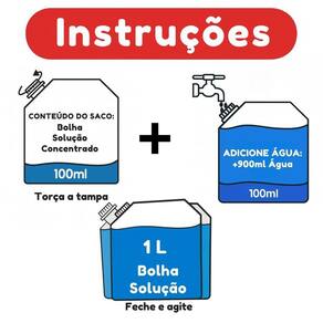 - misture o conteúdo do frasco com 900ml de água limpa para obter o rendimento total. - rende até 10x mais - bolhas grandes, resistentes e coloridas - fórmula segura e não tóxica - ideal para reposição em brinquedos de bolha