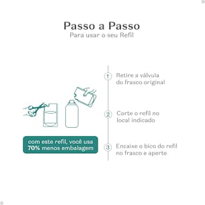 A embalagem de refil utiliza 78% menos plástico em comparação com a embalagem regular do produto.