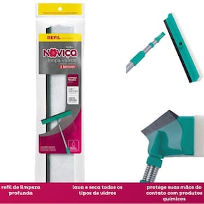 O Refil Mop Limpa Vidros da Noviça é ideal para o Noviça Mop Limpa Vidros. De fácil troca, ele lava e seca todos os tipos de vidros. Com cuidado e praticidade, protege as suas mãos do contato com produtos químicos.