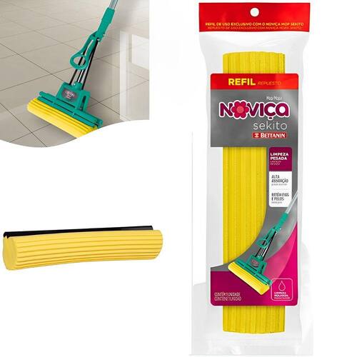 O Refil Mop Sekito da Noviça é ideal para possibilitar mais lavagens e secagens de pisos sem riscar as superfícies. O Noviça Mop Sekito possui uma alavanca, ao puxá-la, espreme a esponja molhada, deixando-a pronta para o uso. Também recolhe pelos de animais e cabelos, além de ser o mop correspondente a esse refil.