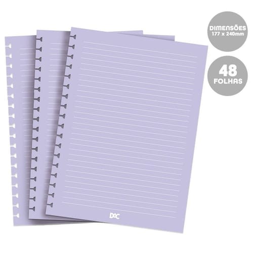 Refil de folhas destacáveis para caderno SMART DAC é ideal para você organizar tudo do seu jeito. Elas tem uma gramatura de 90g, o que impede da tinta vazar pa ra o outro lado Supér incrível, né É você escrevendo e desenhando do seu jeito Cor: Lilás Composição: Papel 90g/m Detalhes: Folhas destacáveis, Papel 90gr, Lilás com linhas brancas Formato: Colegial - 17,7 cm x 24 cm Marca: Não Informado Ean: 7897237366145