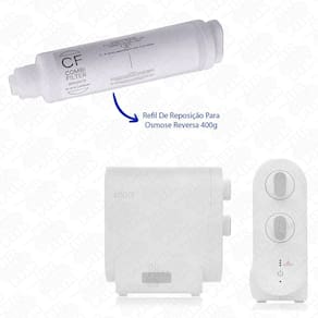 Refil para aparelho de Osmose Reversa BBI modelo POR400G. Classe de Retenção de Partículas: Classe A Eficiência na Redução de Cloro Livre: Aplicável Redução = 75% Vazão Nominal: 60 litros / hora Pressão de Operação: máxima 392 kPa 4,0 bar - mínima 100 kPa 1,0 bar Temperatura de Operação: 5 a 38 C Limite de TDS da Água de Entrada: 1.000 ppm Descritivo Técnico Instalação: POU - Ponto de Uso