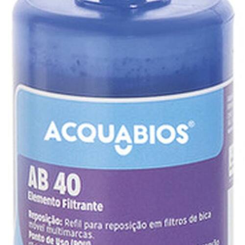 Refil para torneira de cozinha com filtro compativel com os modelos New Acquabios, vida util de ate 1500 L, retencao de particulas classe D, vazao de 40 L/h, modelo AB40 da marca Acquabios, acompanha embalagem tipo blister.