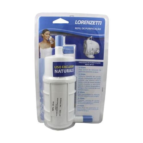 EFIL PURIFICADOR DE ÁGUA NATURALIS RF-01 LORENZETTI é responsável por reter partículas presentes na água e adicionar um mix de minerais benéficos ao bom funcionamento do nosso organismo. O Refil filtragem, proporciona um eficiente processo de purificação com 6 etapas. A troca dos refis é fácil e não requer a presença de um técnico. Basta seguir as indicações do manual do refil. A vida útil dos refis pode ser prolongada executando a retrolimpeza do seu aparelho. Ean: 7896451805201