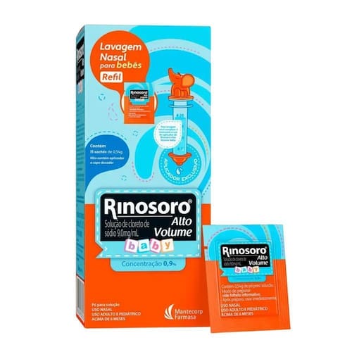 O Refil Rinosoro Alto Volume Baby 0,9% foi desenvolvido para o preparo de solução isotônica de cloreto de sódio, ideal para higienização e cuidado diário das narinas. Com fórmula prática em pó, o produto oferece economia e praticidade para reposição do kit Rinosoro Alto Volume Baby, ajudando na limpeza e manutenção da umidade natural das vias nasais.